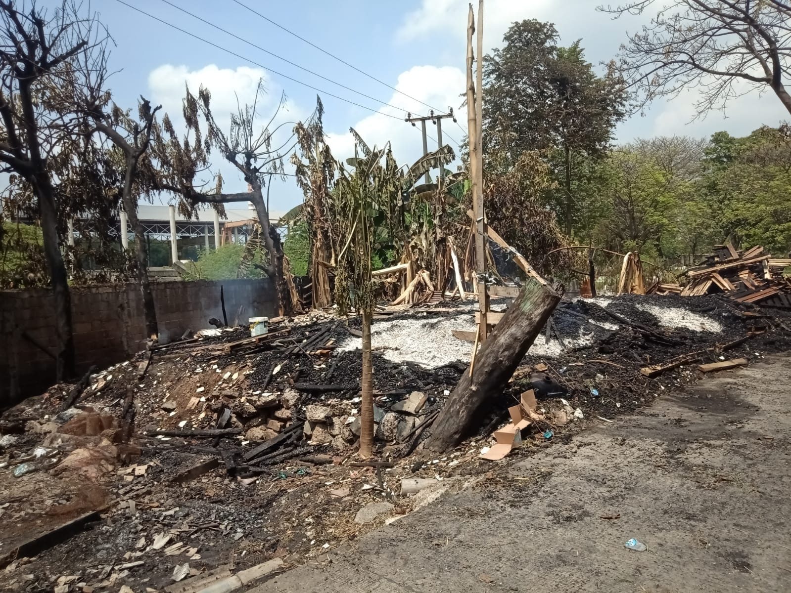 Api sempat merambat ke warung nasi yang berada di sebelahnya pun ikut ludes terbakar dilahap si jago merah, kebakaran terus menjalar hebat hingga bangunan tak tersisa dan hanya puing puing sisa kebakaran.