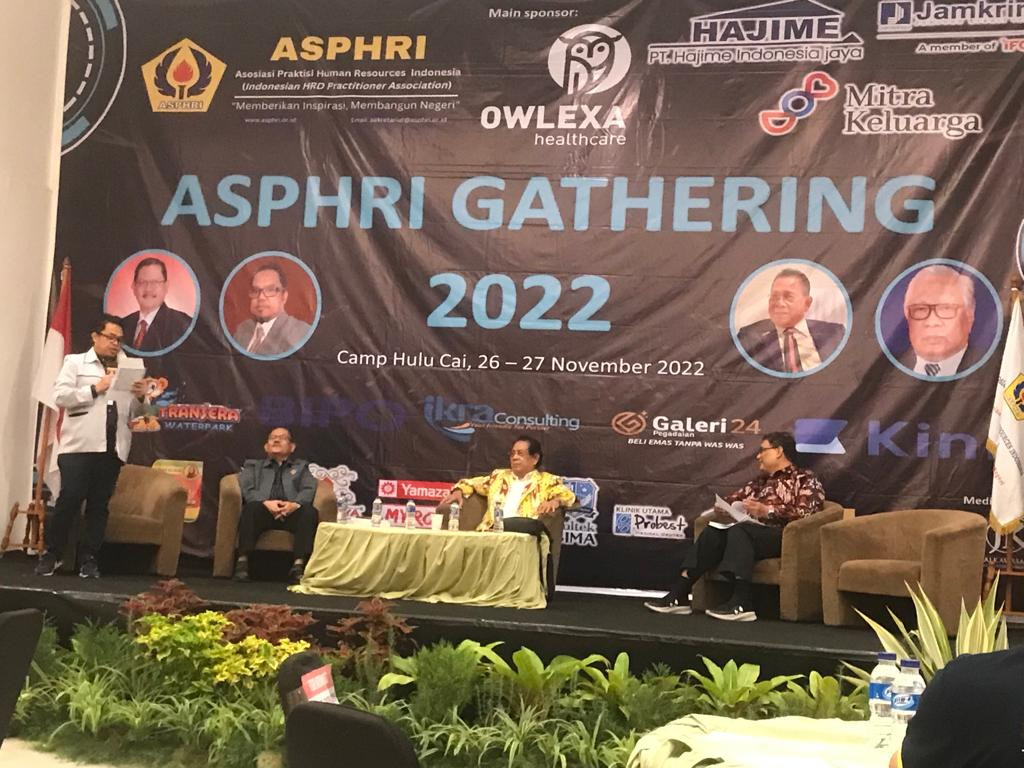 Halo pabrikers, Asosiasi Praktisi HR Indonesia (ASPHRI) telah menuntaskan kegiatan gathering Sabtu-Minggu (26-27/11). Kegiatan yang berdurasi dua hari berlangsung di Camp Hulu Cai, Ciawi , Bogor. Pembukaan acara ini dihadiri oleh puluhan anggota ASPHRI dari berbagai daerah di Indonesia. Tampak hadir pula, mantan menteri tenaga kerja, Bomer Pasaribu, Akademisi Datep Purwa Saputra dan Pakar Hukum Perburuhan, Woeryono.