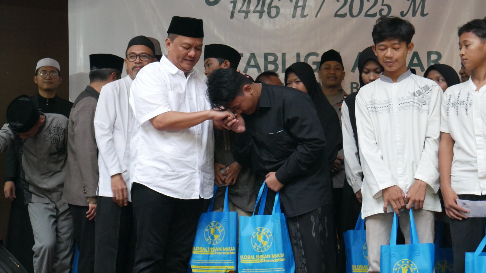 Acara tersebut dihadiri oleh Kepala Desa Mekarmukti, Camat Cikarang Utara Enop Can, Tokoh Masyarakat H. Obing Fahrudin, perwakilan dari Baznas, BJB Syariah, jajaran manajemen, karyawan, serta para pimpinan unit di bawah naungan Yayasan Global Insan Mulia.