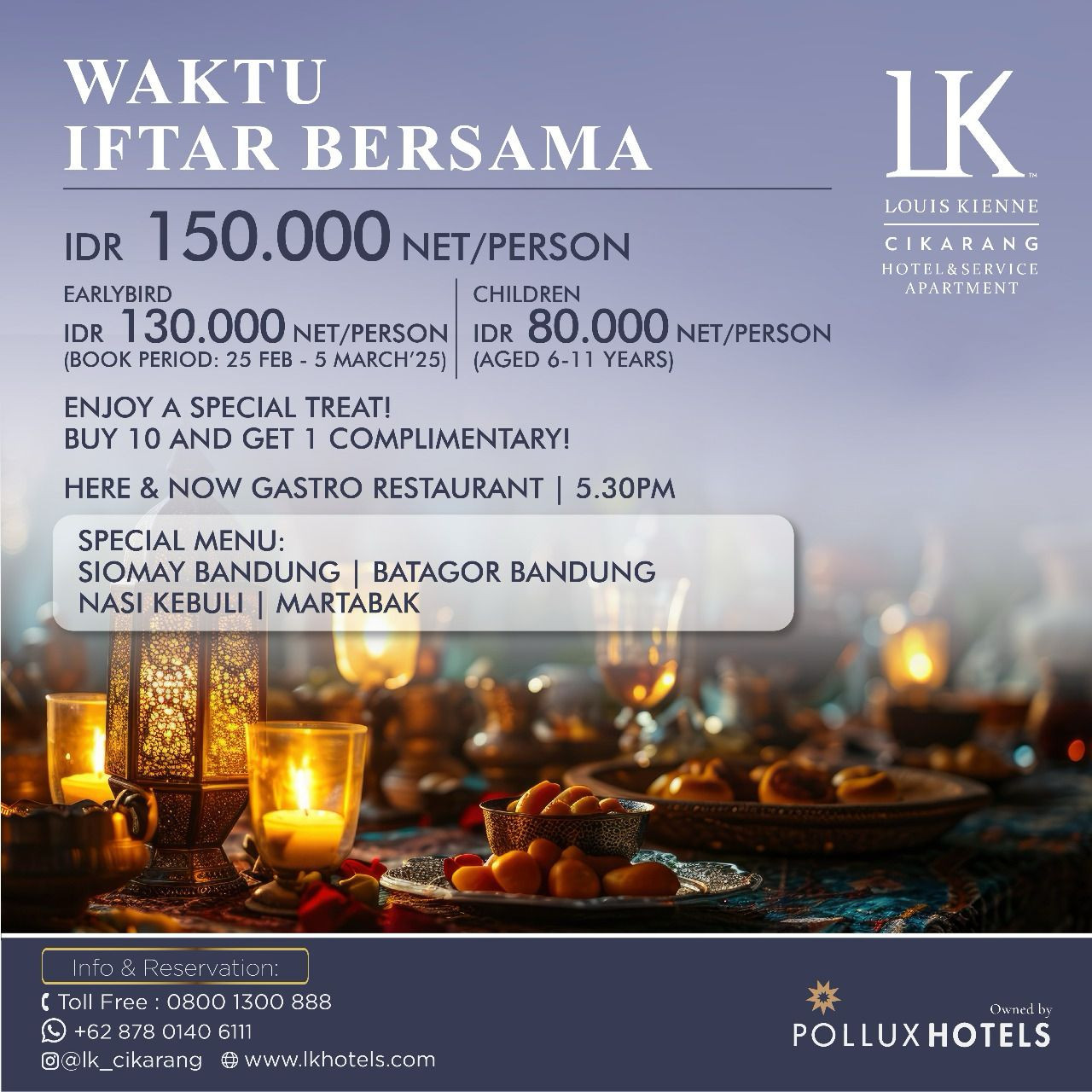 Rayakan indahnya Bulan Suci dengan pengalaman berbuka puasa yang istimewa di Louis Kienne Cikarang.